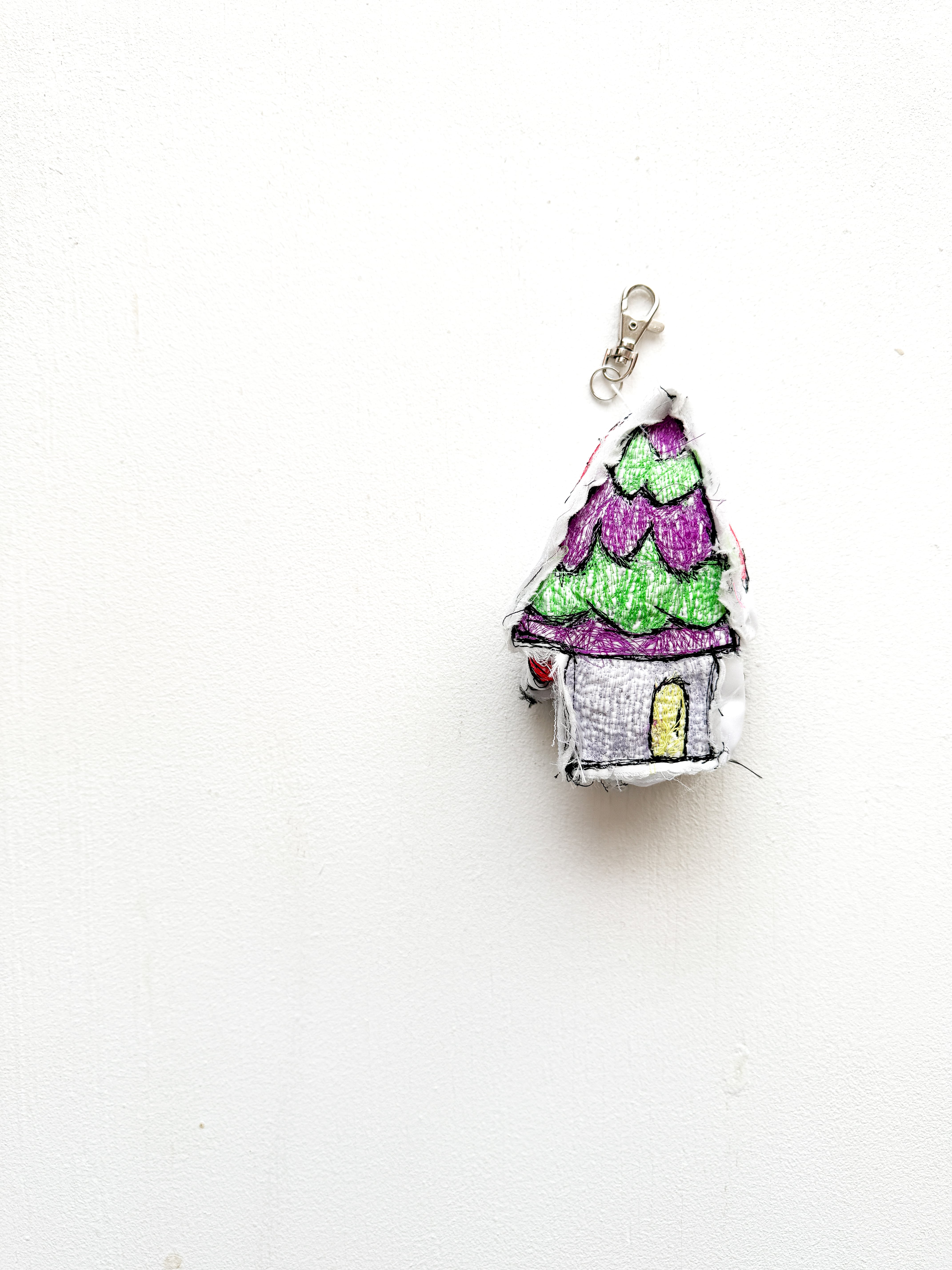 ぷくりと膨らんでいるチャーム。刺繍を施した一点もののアイテムです