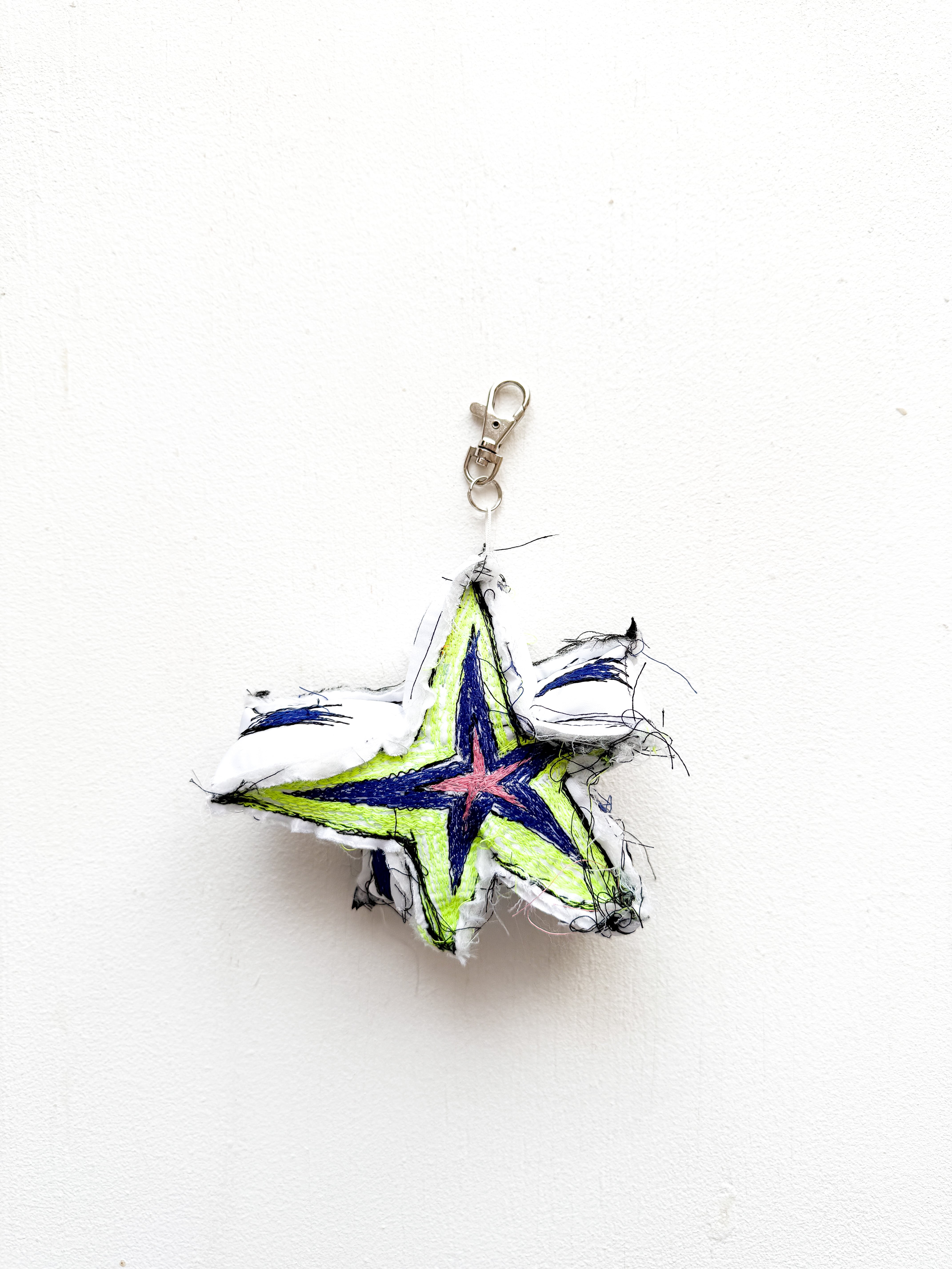 ぷくりと膨らんでいるチャーム。刺繍を施した一点もののアイテムです