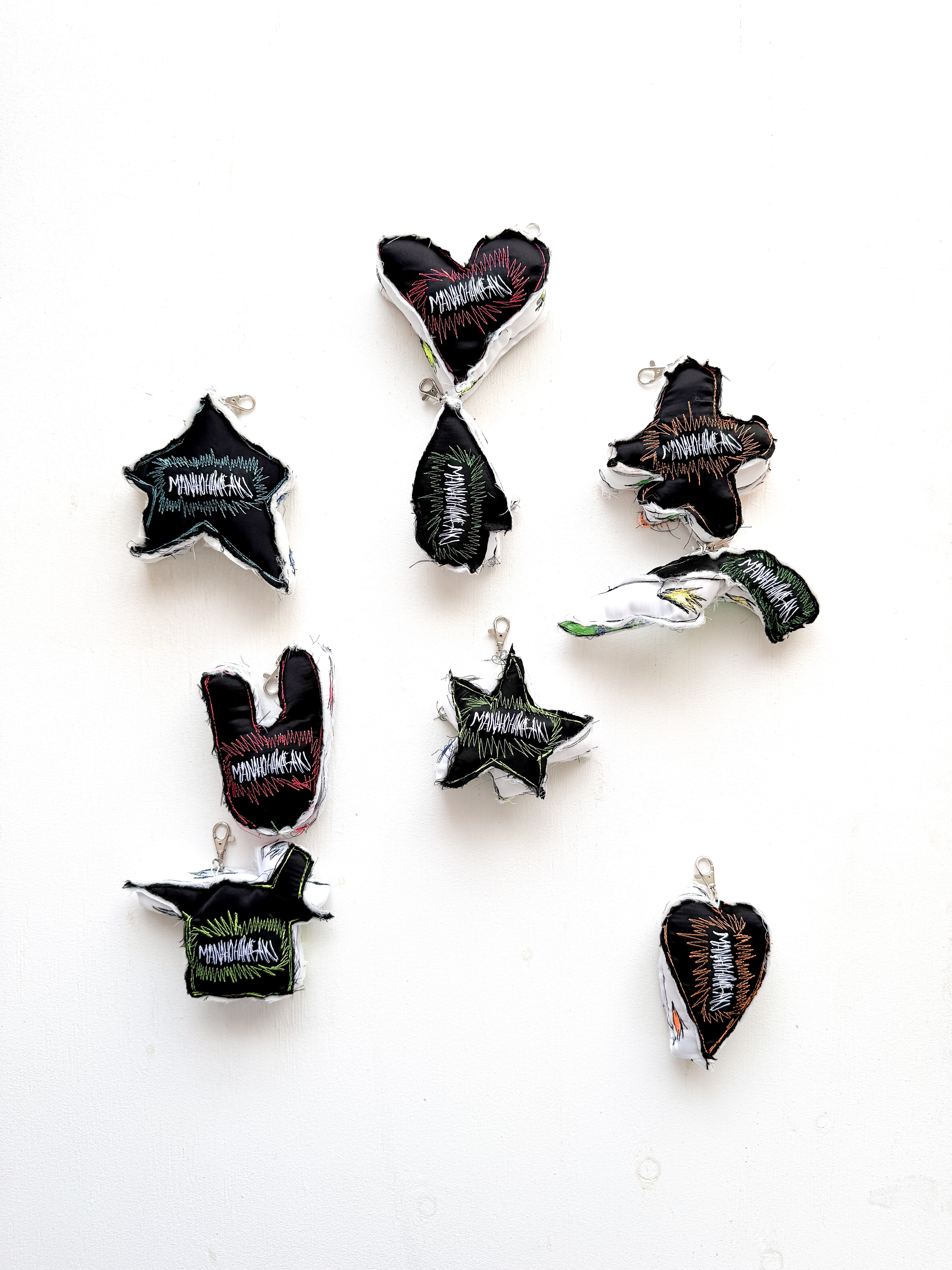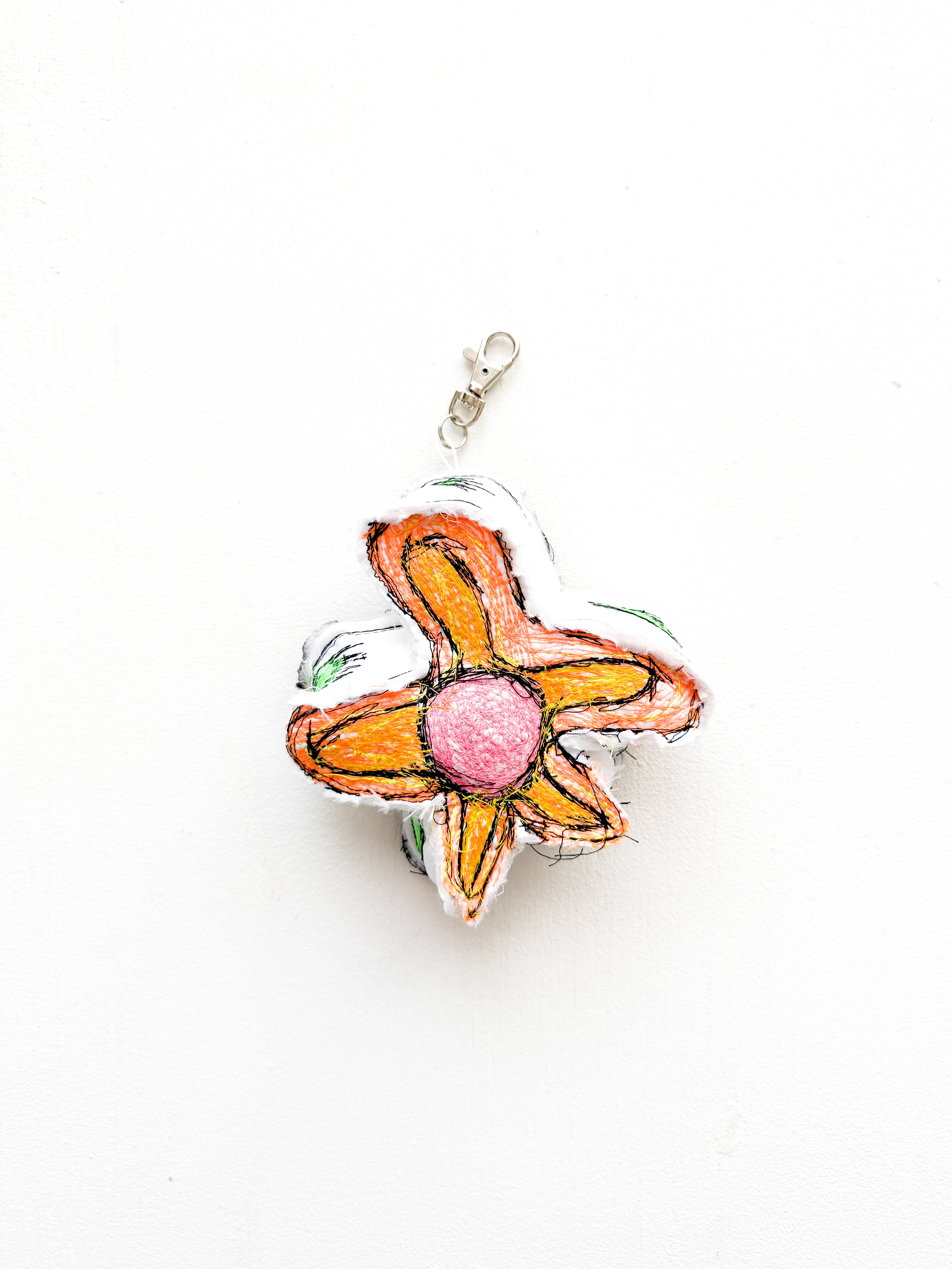 ぷくりと膨らんでいるチャーム。刺繍を施した一点もののアイテムです